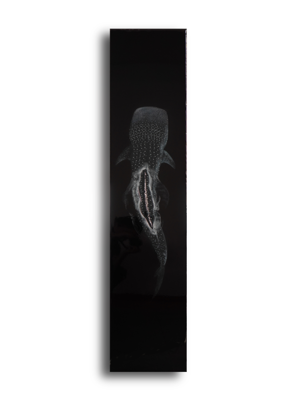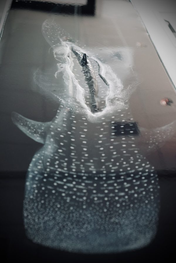 Me apetecía que su aleta dorsal saliera literalmente del lienzo como símbolo de “aquí estoy, llegué”, por eso está esculpida y sobresale en 3D.