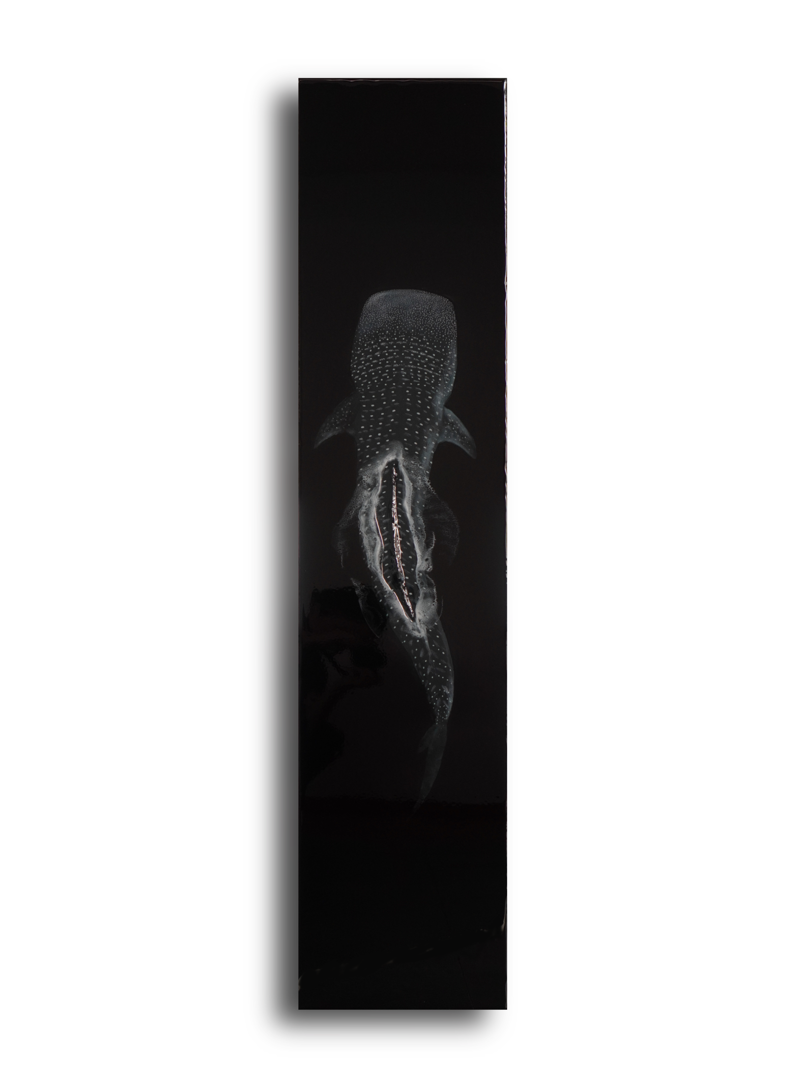 Quise crear a su alrededor un escenario gélido y oscuro, pero tranquilo e inmortal… una calma que se rompe justo cuando sale a la superficie, cortando el agua con su aleta y dejando una ligera espuma. 🖤